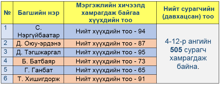1. Сайн багшийн арга туршлагаас суралцаж, ажилдаа тусгаж хэрэгжүүлэх